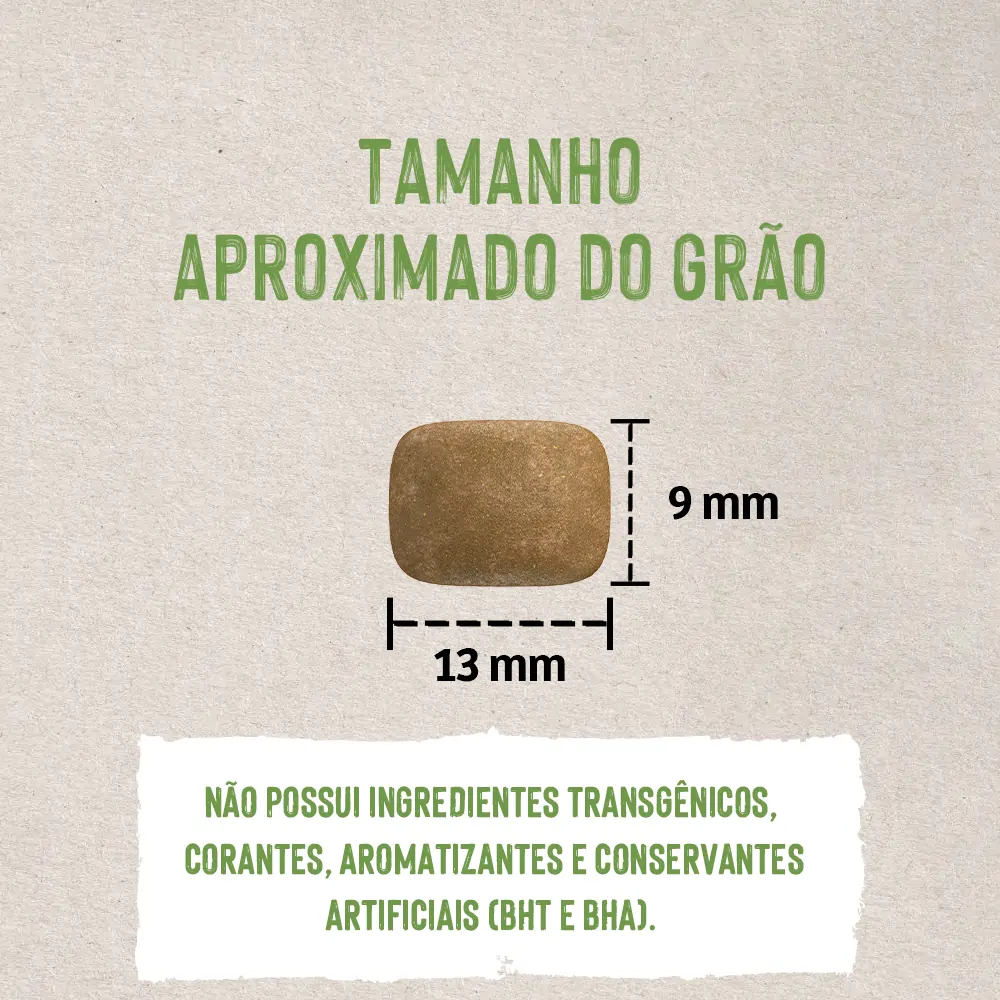 Não possui ingredientes transgênicos, corantes, aromatizantes e antioxidantes artificiais (BHT e BHA).