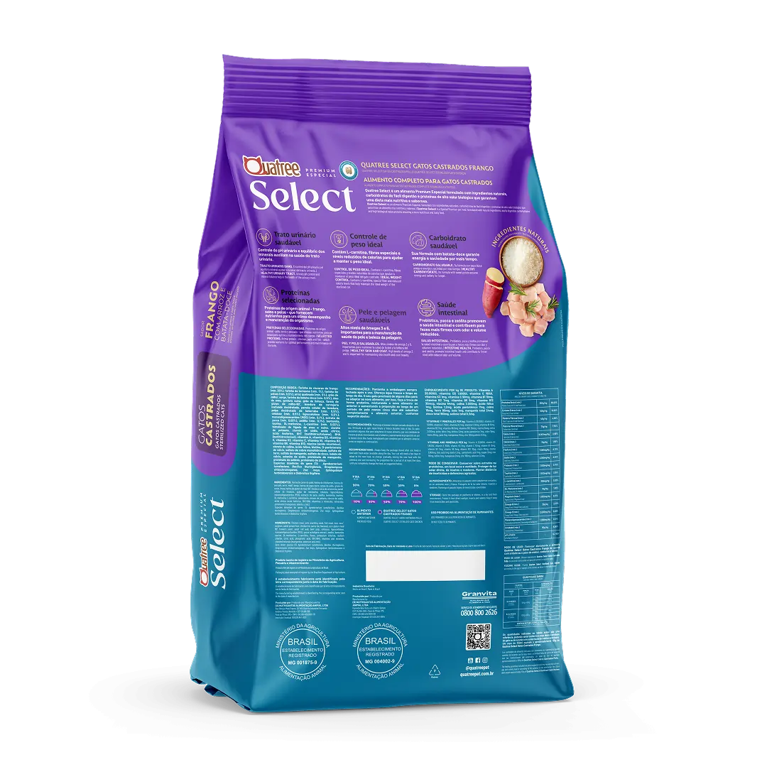 Quatree select é um alimento Premium Especial formulado com ingredientes naturais, carboidratos de fácil digestão e proteínas de alto valor biológico que garantem uma dieta mais nutritiva e saborosa.