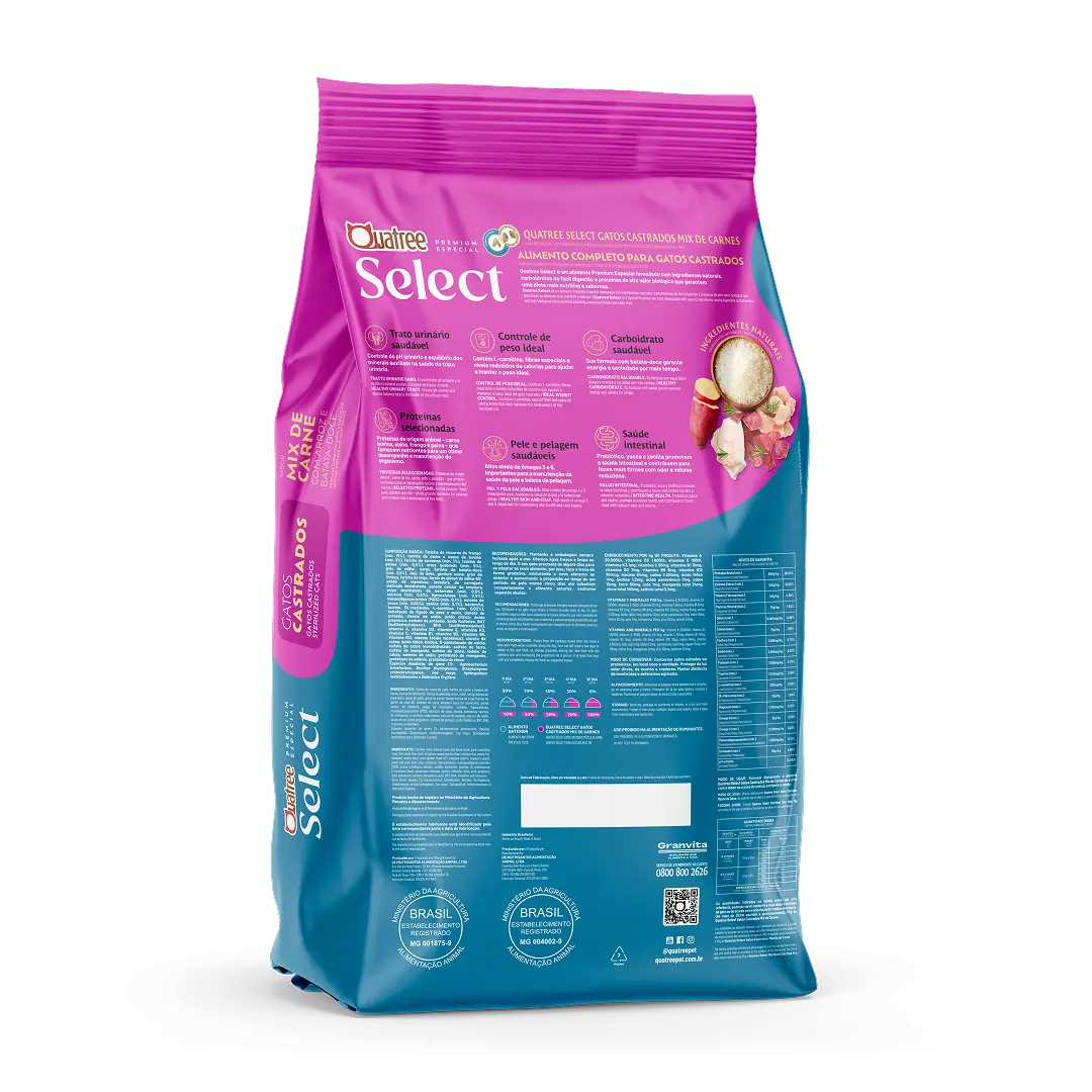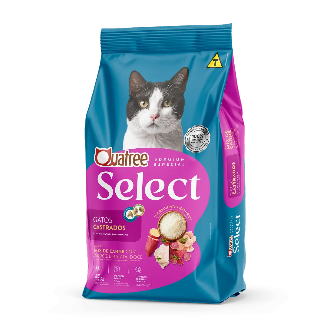 Quatree select é um alimento Premium Especial formulado com ingredientes naturais, carboidratos de fácil digestão e proteínas de alto valor biológico que garantem uma dieta mais nutritiva e saborosa.